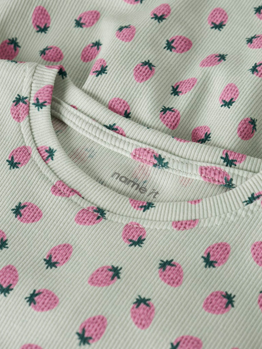 Klänning Kortärmad Vemma Jordgubbar Ribbad Grön