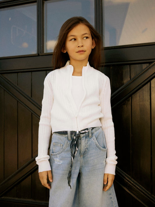 Stickad Cardigan Habour Dragkedja Enfärgad Vit