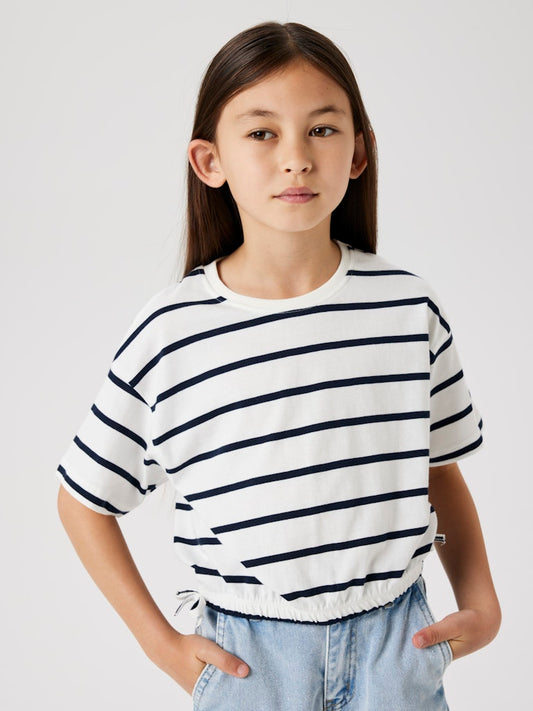 Kortärmad Croppad Topp Randig Funion Vit/Blå