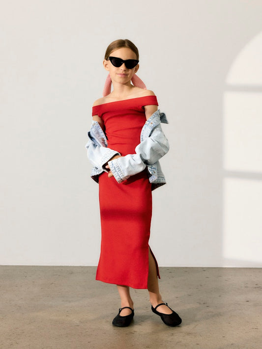 Långklänning Flommi Ribbad Offshoulder Enfärgad Röd