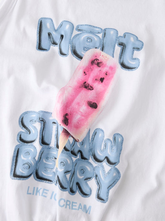 Topp Kortärmad Jordgubbe Farinaz Vit