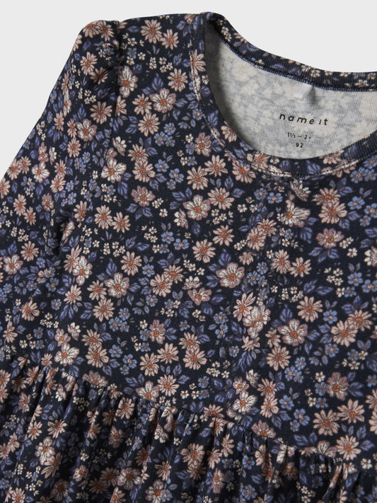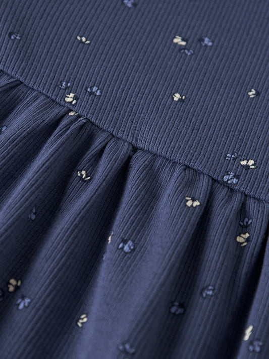 Klänning Nelia Långärmad Ribbad Blommor Blå