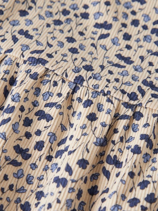 Klänning Nelia Långärmad Ribbad Blommor Beige