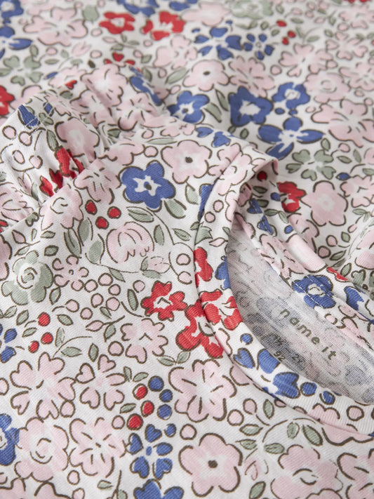 Klänning Nelia Långärmad Ribbad Blommor Rosa