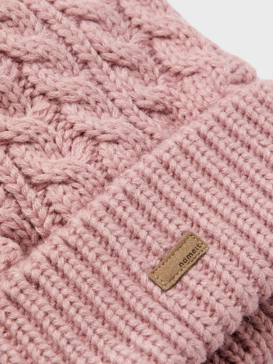 Mössa Stickad Moso Vindskydd Mörkrosa