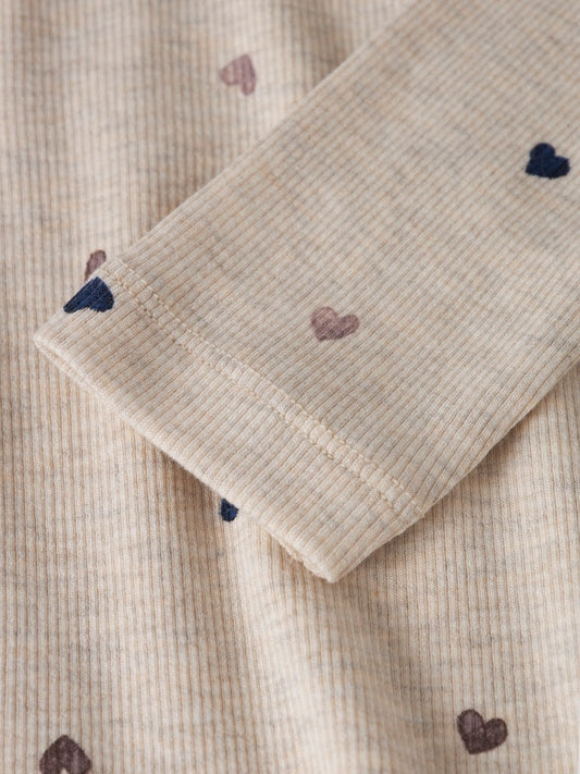 Topp Nutti Långärmad Ribbad Hjärtan Beige
