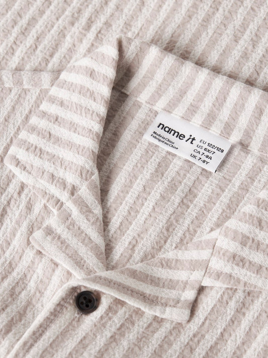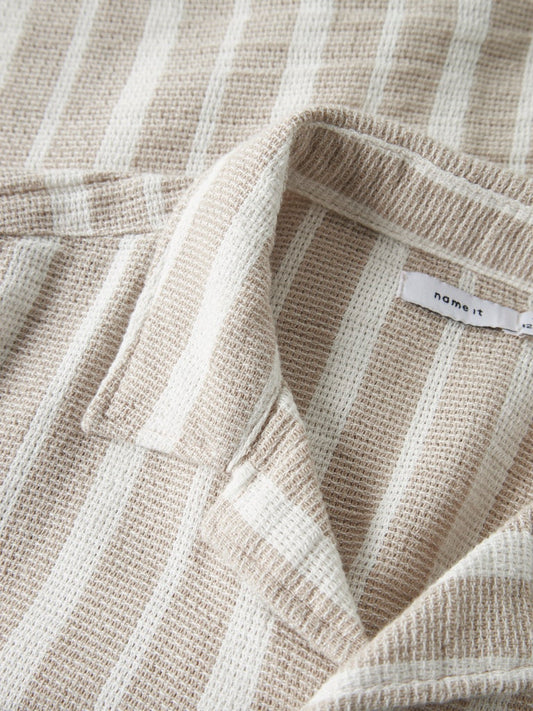 Skjorta Fedenis Kortärmad K Randig Struktur Beige/Vit