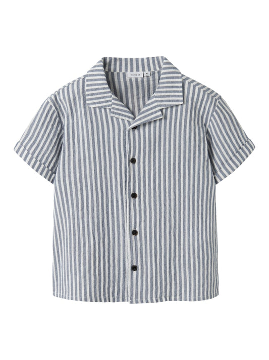 Skjorta Fedenis Kortärmad K Randig Struktur Blå/Vit