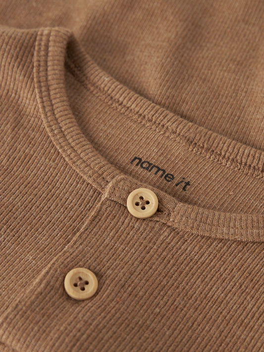Långärmad Topp Kab Ribbad Enfärgad Brun