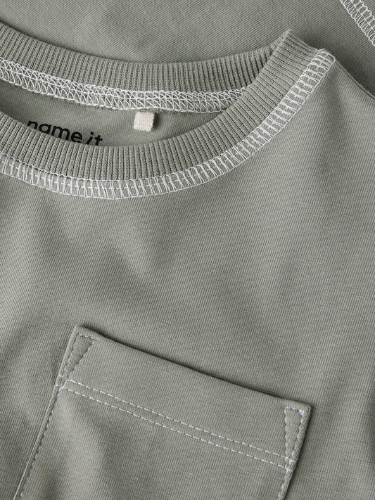 T-shirt Kortärmad Enfärgad Bröstficka Daso Grön