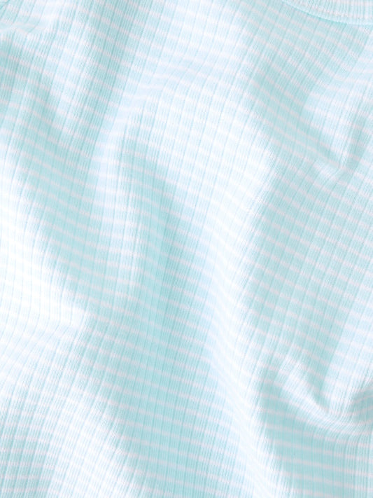 Kortärmad Topp Fikatie Ribbad Randig Turkos/Vit