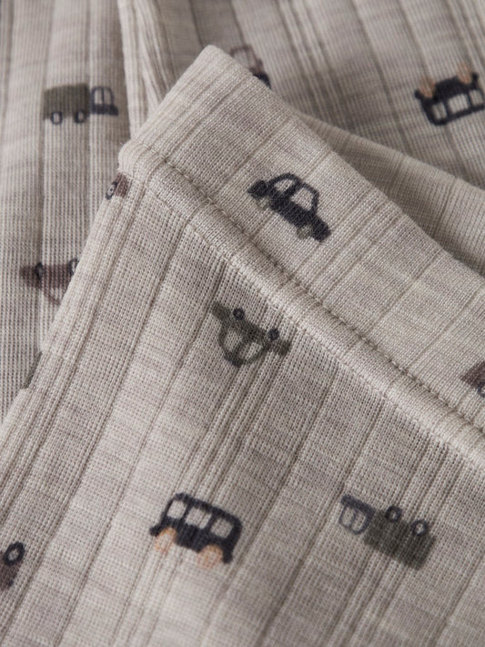 Leggings Merinoull Wax Ribbad Enfärgad Grå Beige