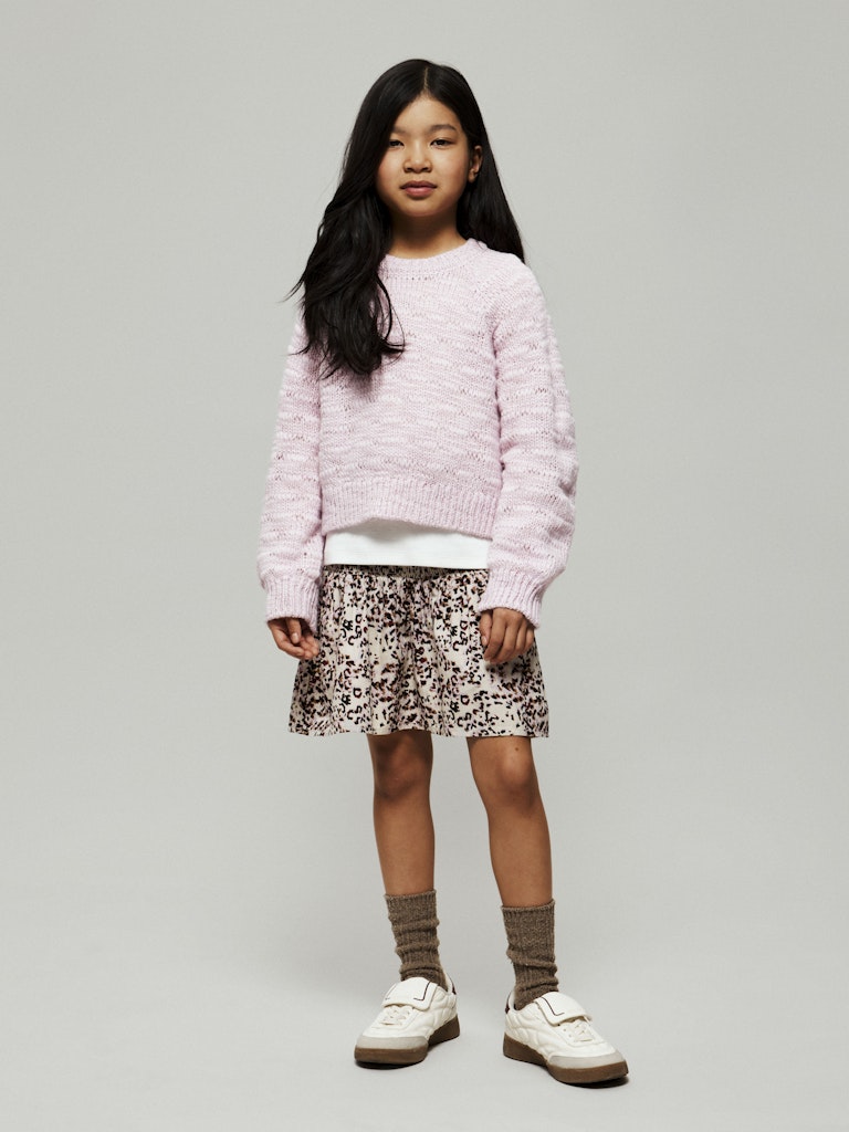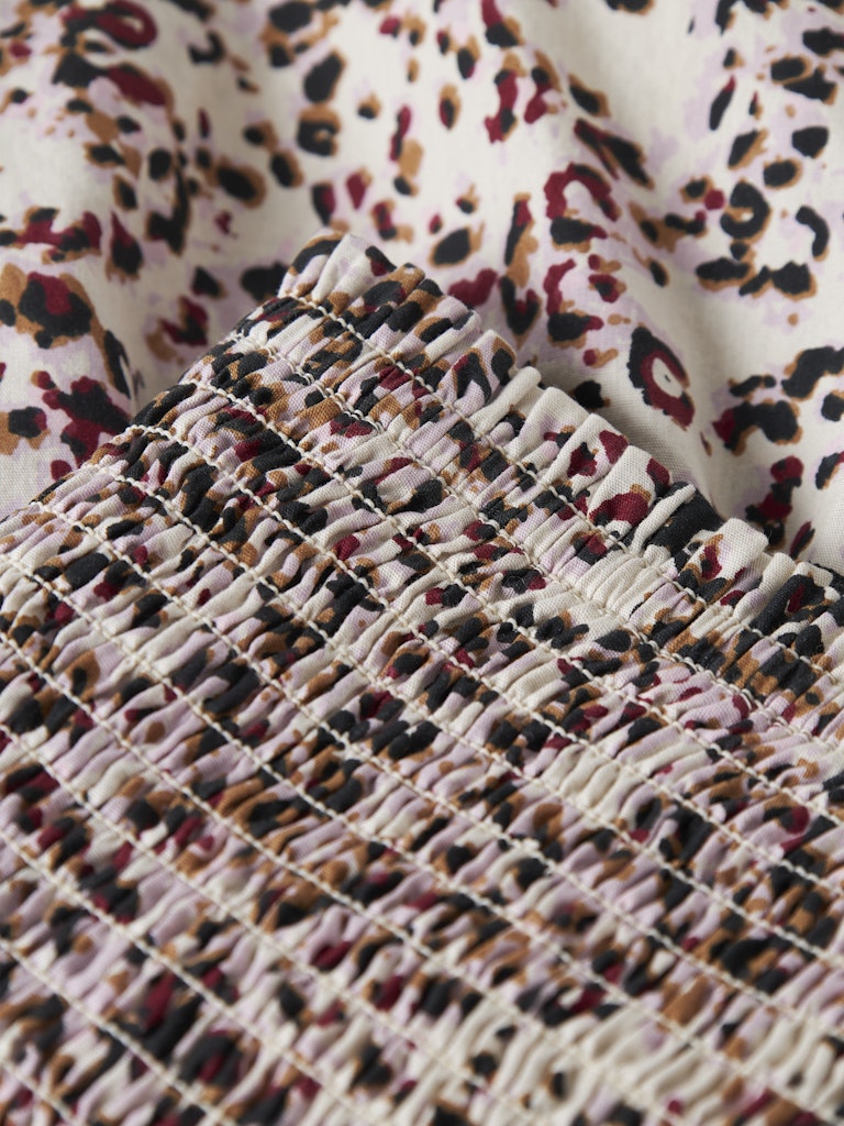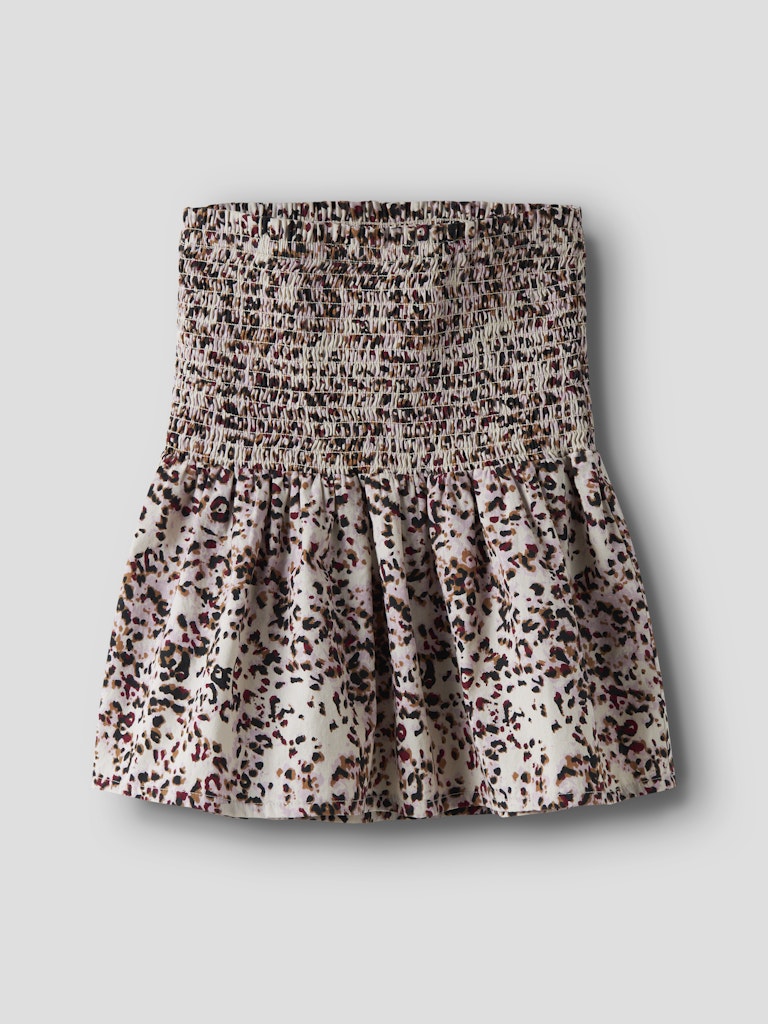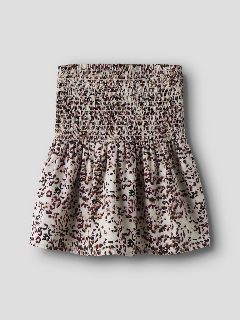Snygg kort kjol i leoprint med bred elastisk smocklinning till tjejer.