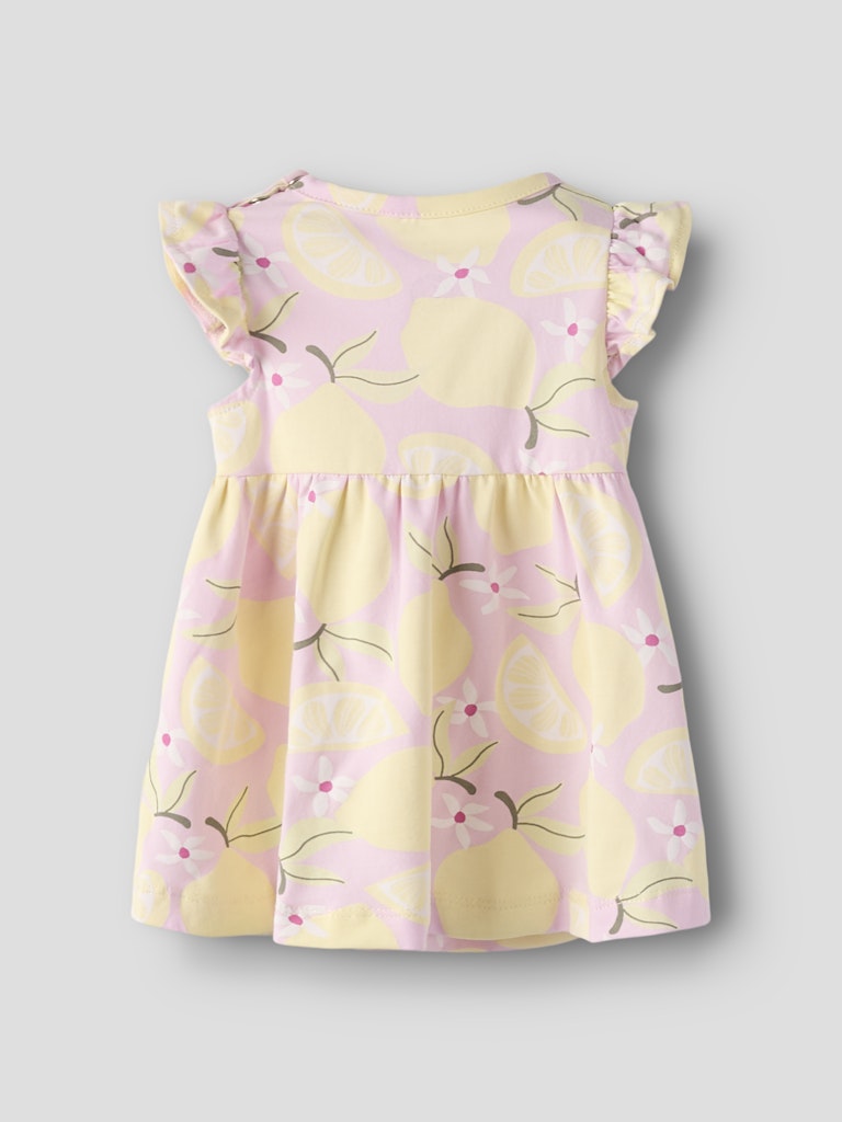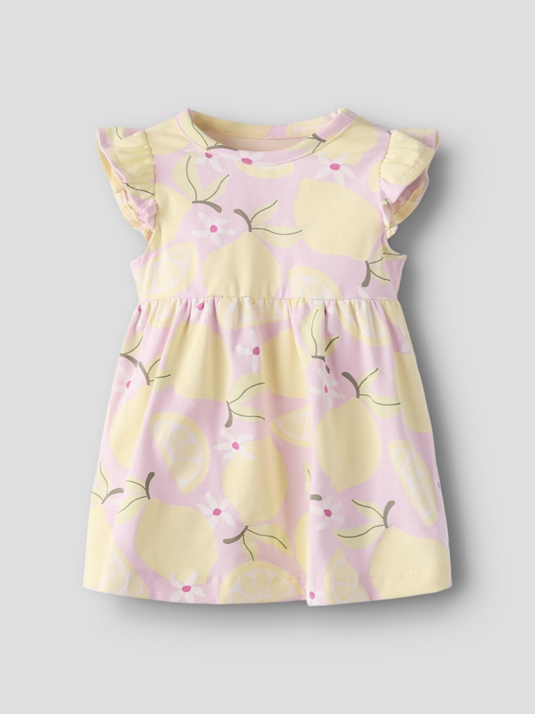 Mönstret är härliga citroner och den har fina korta volangärmar.