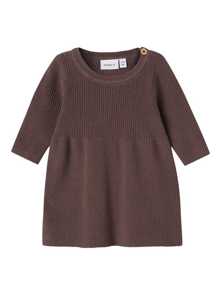 Mjuk finstickad klänning i ekologisk bomull till baby.