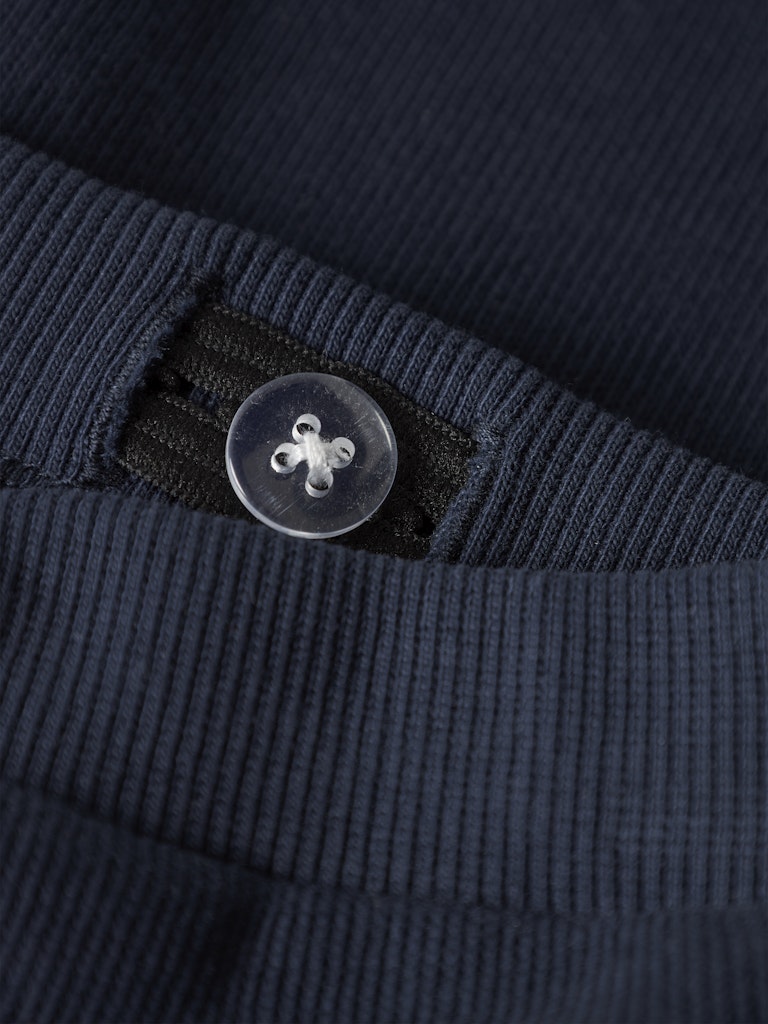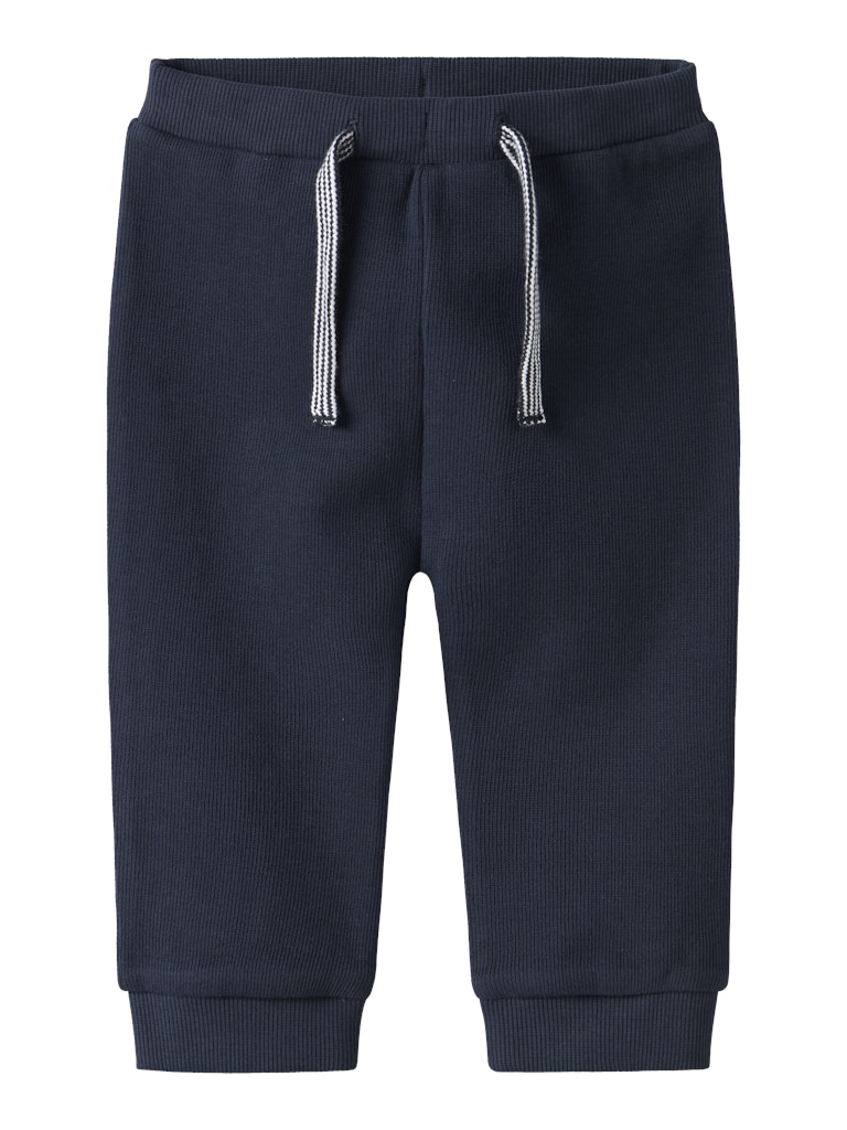 Mjuk mysig enfärgad sweatbyxa med reglerbar midja till baby i ekologisk bomull.