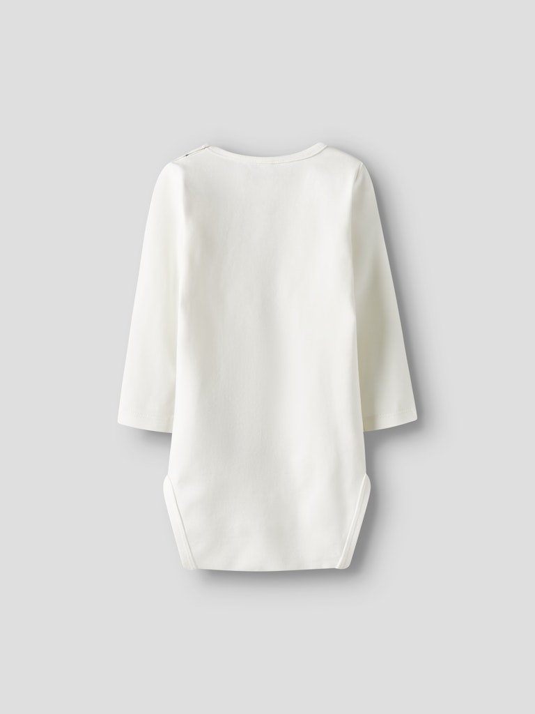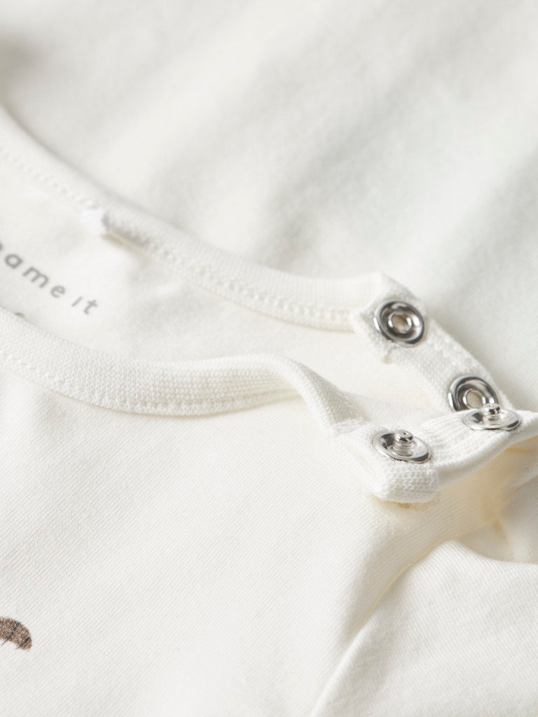 Söta små djur från bondgården är mönstret på denna mjuka body i ekologisk bomull till baby.