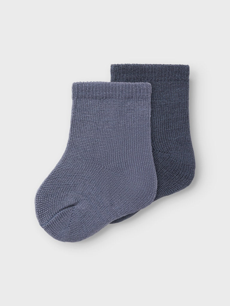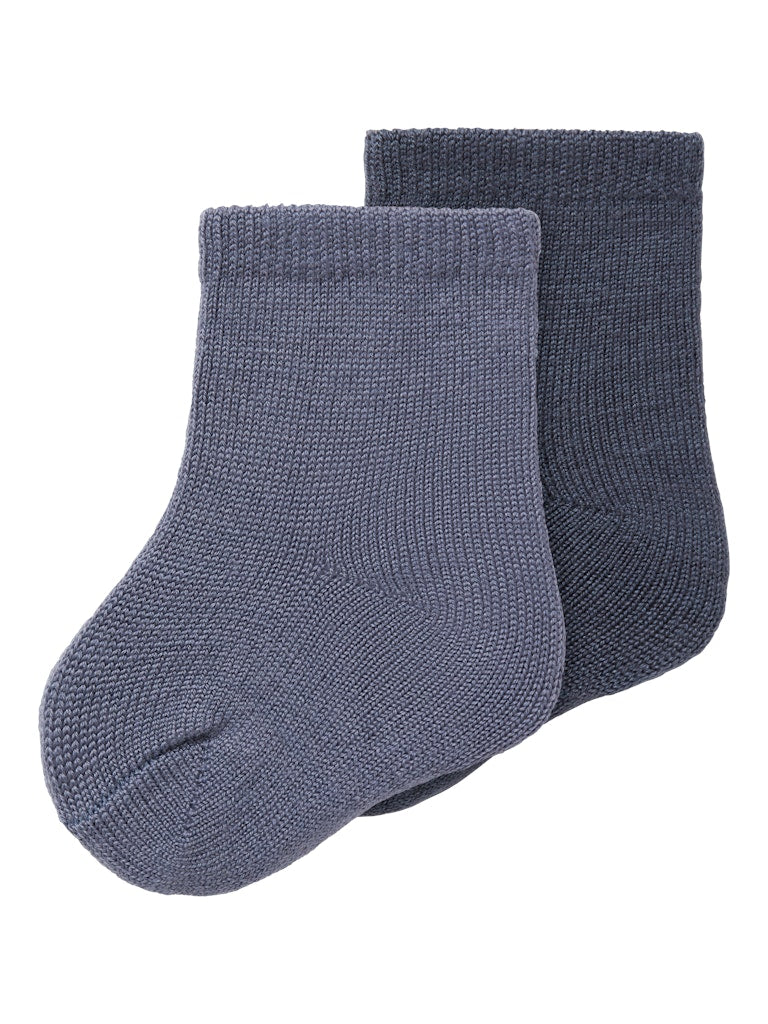 Tunna ullstrumpor i 2-pack till baby. Två olika blå nyanser av mjukaste merinoull/viskosblandning.