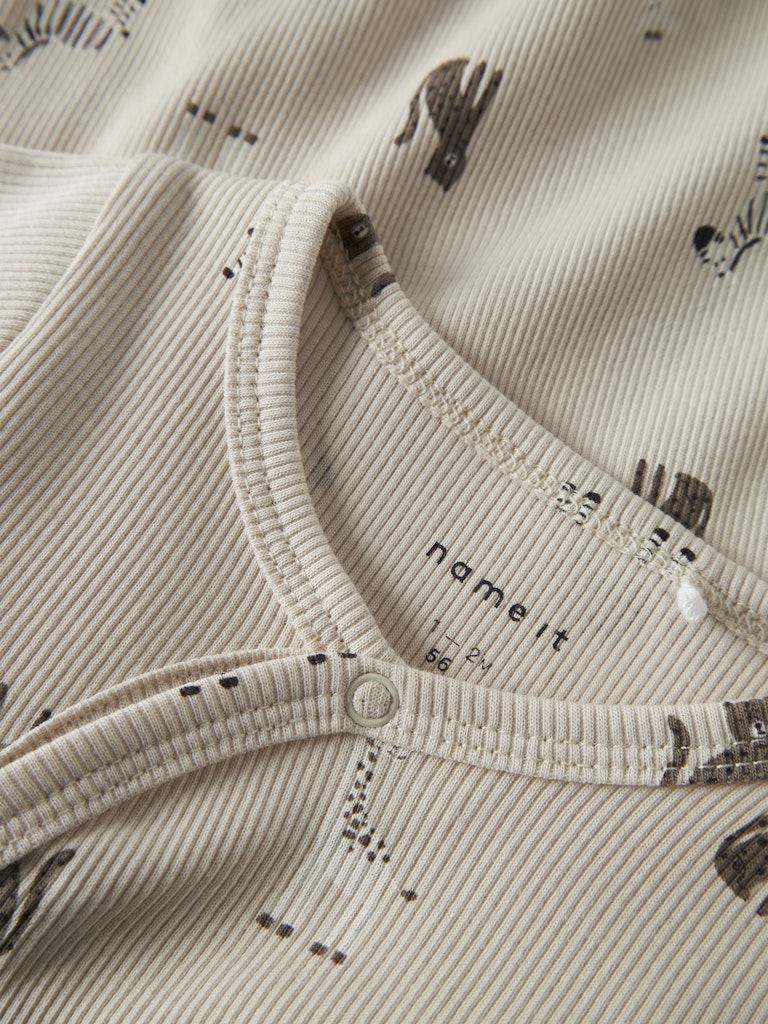 Mjuk ribbad suit i ekologisk bomull till baby. Praktisk knäppning med tryckknappar