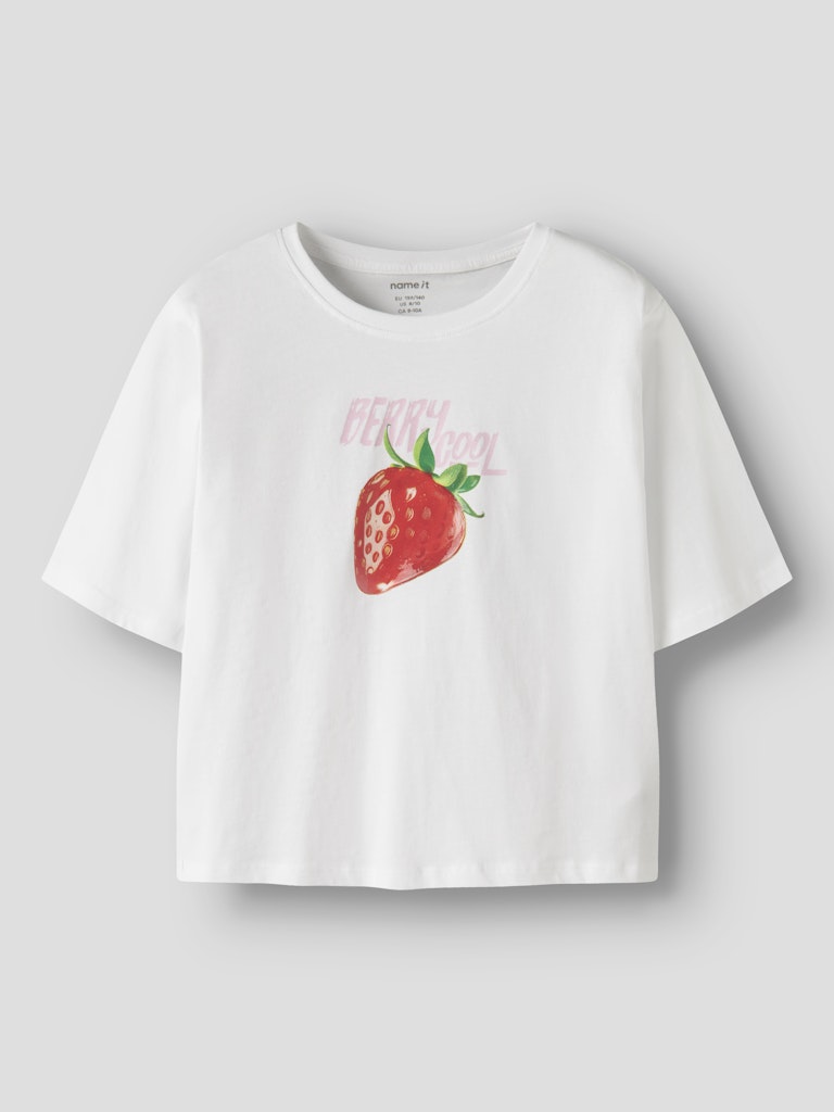 T-shirt till kids med rund halsringning och härligt tryck med en jordgubbe framtill.