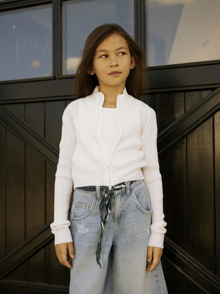 Cool cardigan med 2-vägsdragkedja i mjukt finstickat material till kids.