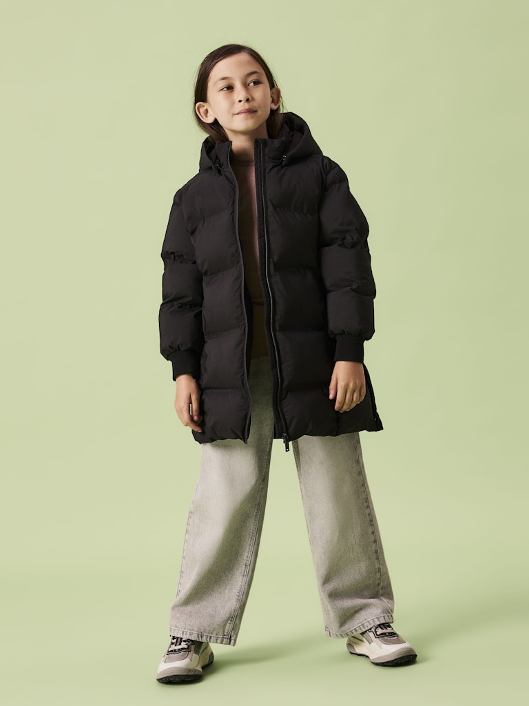 Varm lång vadderad täckjacka till kids för kalla höst och vinterdagar.