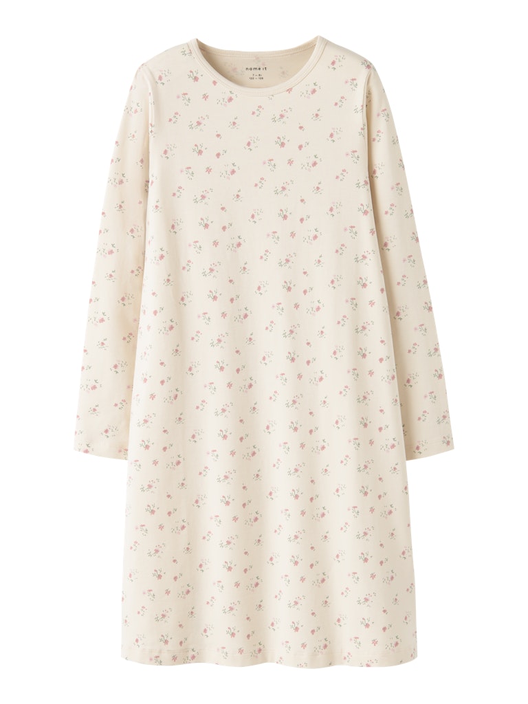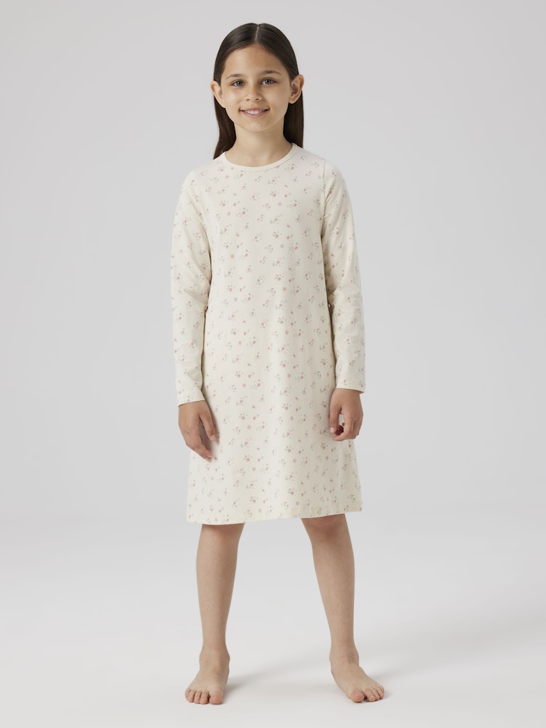 Långärmat nattlinne till flickor i mjuk bomull med fint mönster med blommor.