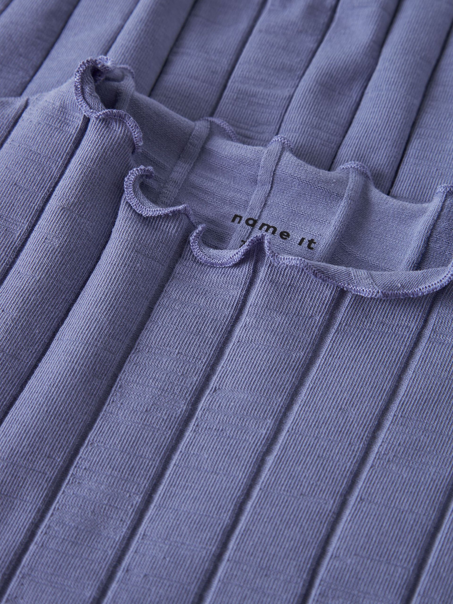 Enfärgad ribbad topp till tjejer med fina detaljer i alla avslut.