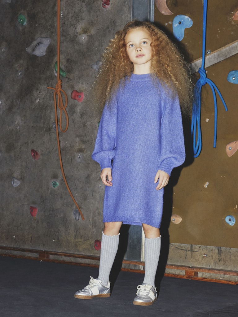 Snygg mjuk stickad klänning till tjejer i en avslappnad lös passform för en skön känsla.