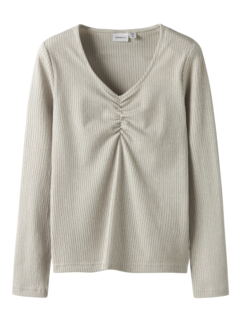 Cool beige glittrig topp till tjejer med fina rynkade detaljer framtill.