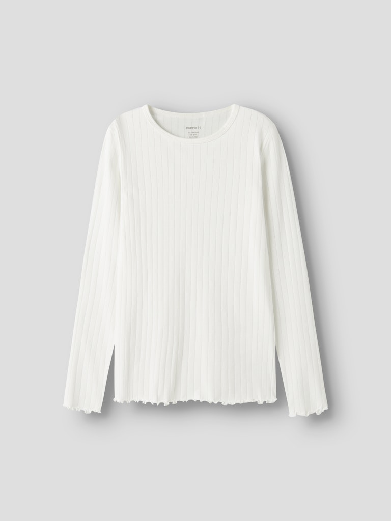 Långärmad Topp Ribbad Enfärgad Vibse Vit