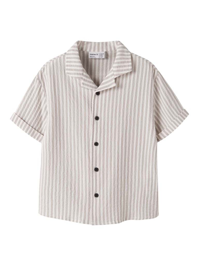 Skjorta Fedenis Kortärmad K Randig Struktur Beige/Vit