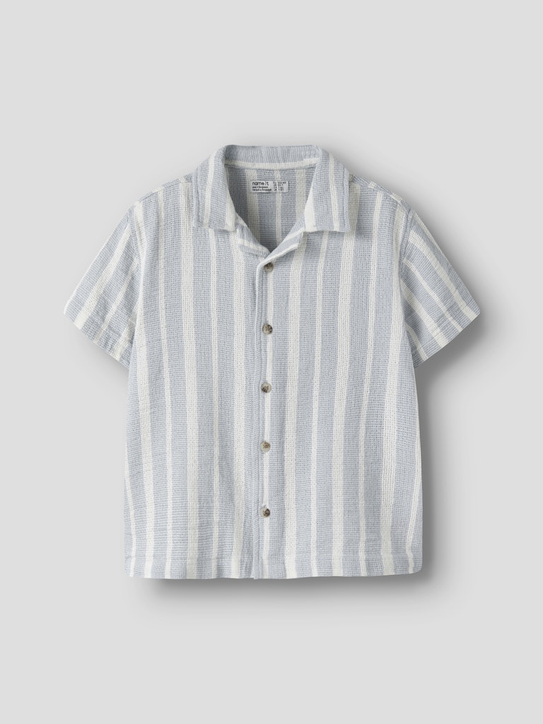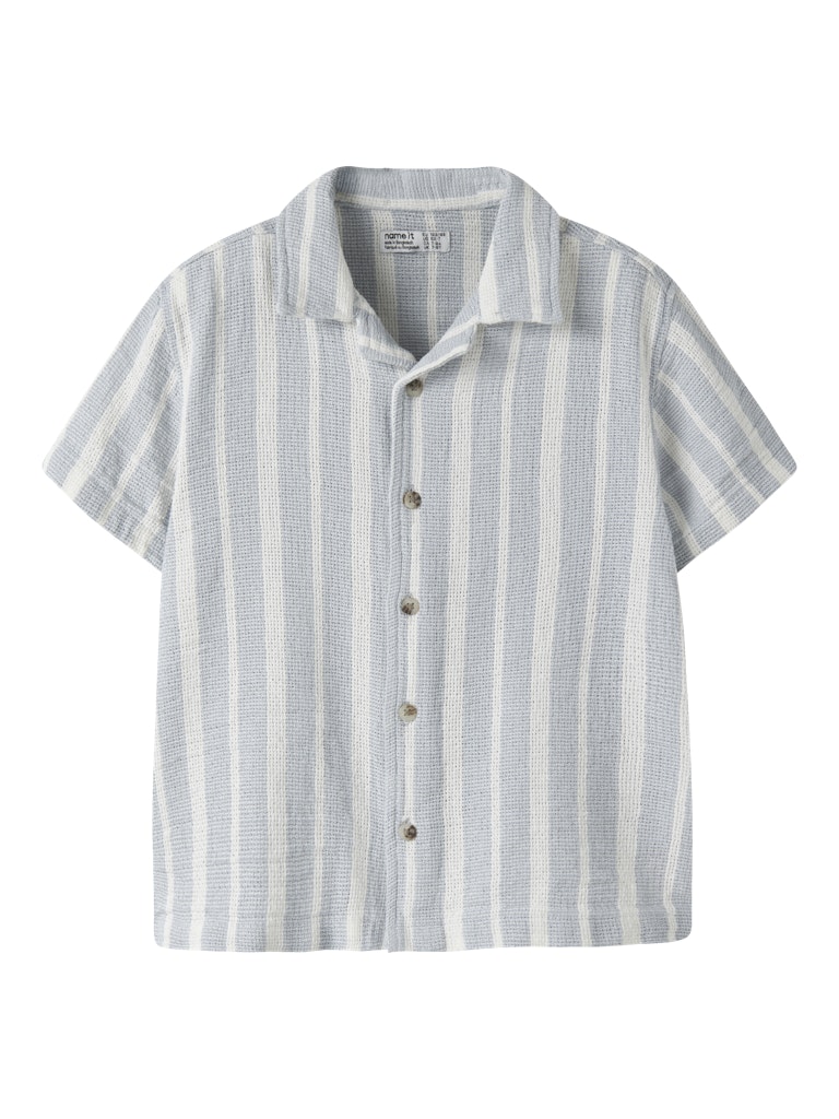 Trendig randig skjorta till killar i mjuk ekologisk bomull med knappknäppning fram.