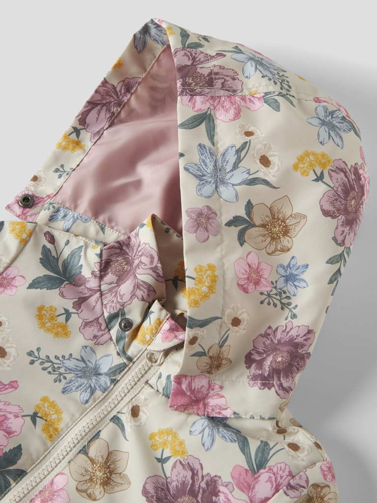 Praktisk vindjacka till barn med blommor, perfekt till förskolan!