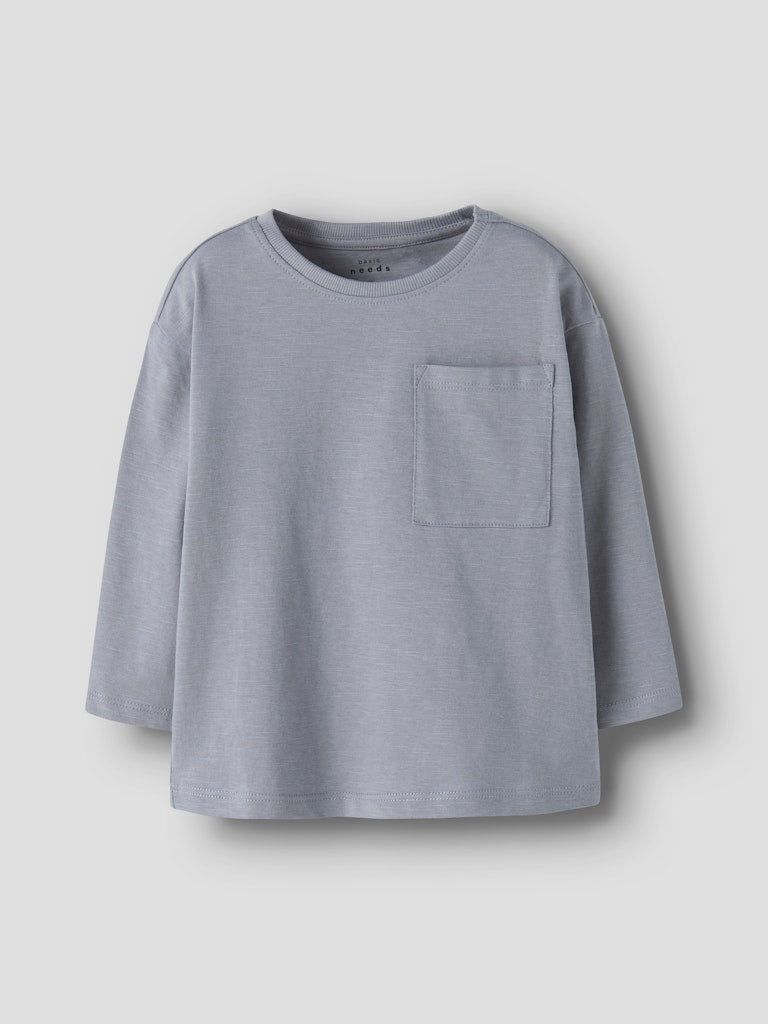Långärmad mjuk enfärgad topp i bomull till killar med en liten bröstficka.