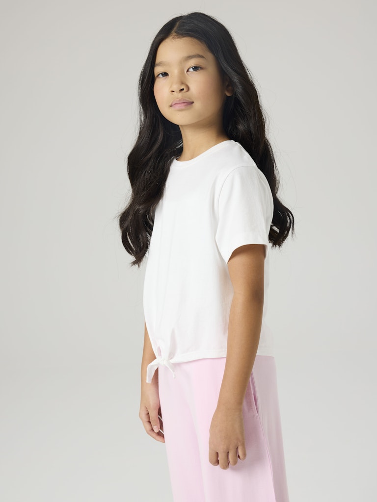 Mjuk enfärgad topp i bomull med knytdetalj till tjejer.